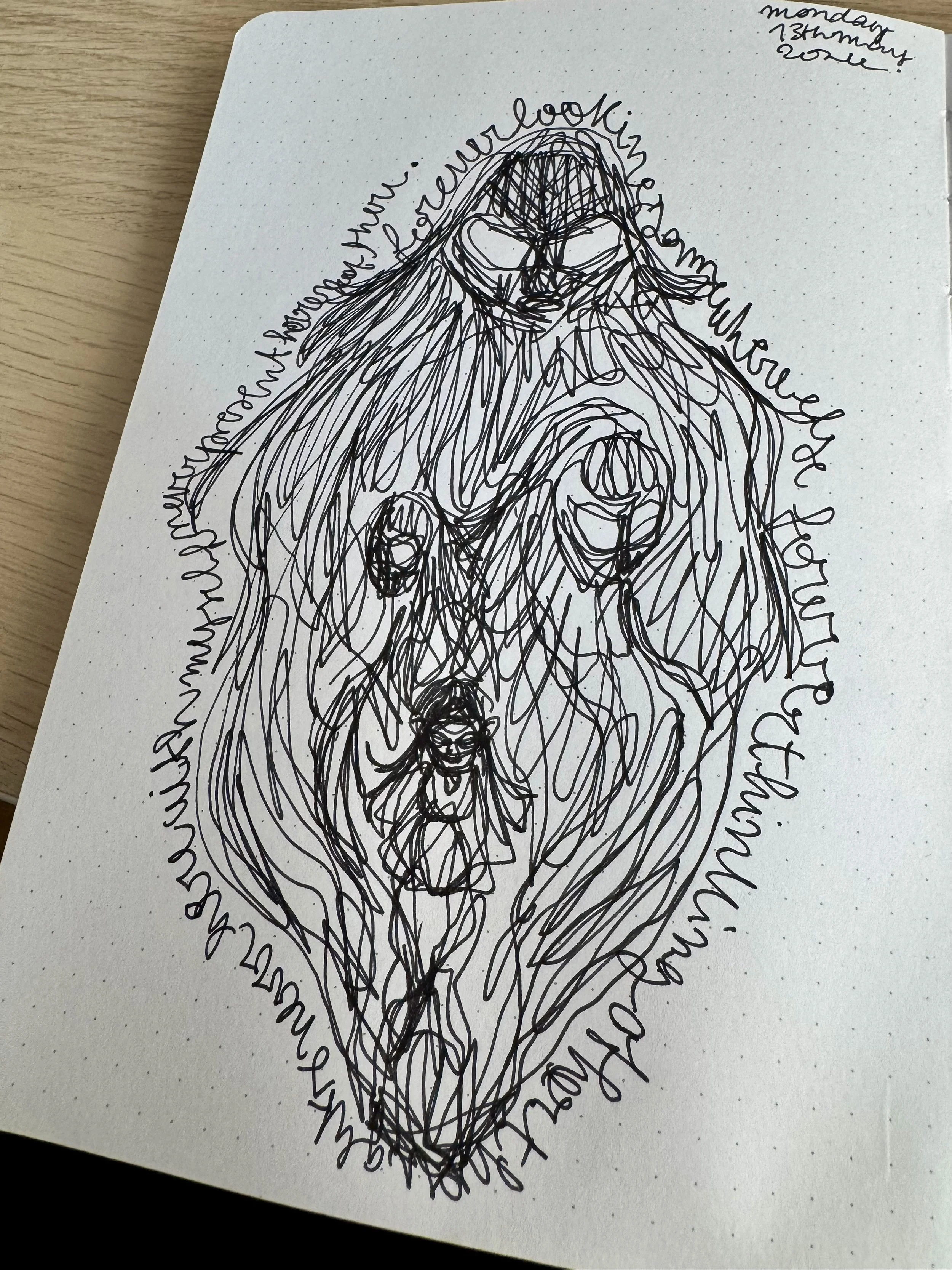 An example of the kind of scribbles I do in my sketchbook whenever I have to remind myself who I am